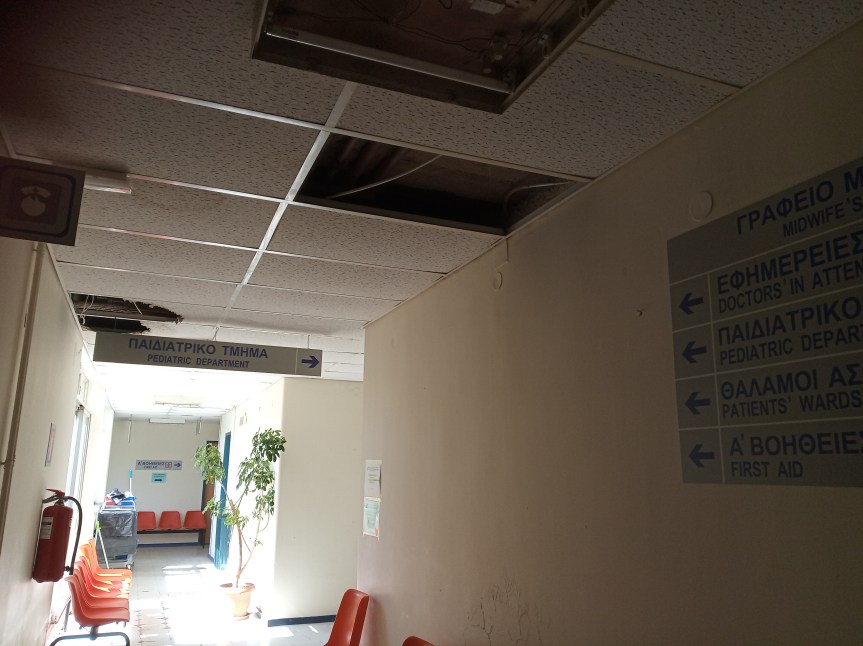 Σε όλα τα κέντρα υγείας, τα κτιριακά προβλήματα παραμένουν απαράδεκτα. Ταβάνια από αμίαντο, κατεστραμμένα, υγρασία στους τοίχους, στέγη διάτρητη, φθορές σε ταβάνια και στους τοίχους. Υδραυλικές εγκαταστάσεις και τουαλέτες που παρουσιάζουν άθλια εικόνα.