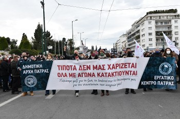 «Η Λαϊκή Συσπείρωση Ιονίων νήσων χαιρετίζει την πρωτοβουλία της Δημοτικής Αρχής Πάτρας, του Εργατικού Κέντρου Πάτρας και άλλων μαζικών φορέων της πόλης για την οργάνωση αγωνιστικής πορείας και συγκέντρωσης, σήμερα Σάββατο 29/1 στις 12 μ., στο ΣΥΝΤΑΓΜΑ. Χαιρετίζουμε τη μεγάλη συμμετοχή συνδικαλιστικών οργανώσεων και φορέων από όλη την Αττική που ενώνουν τις φωνές τους με τους διαδηλωτές από την Πάτρα.